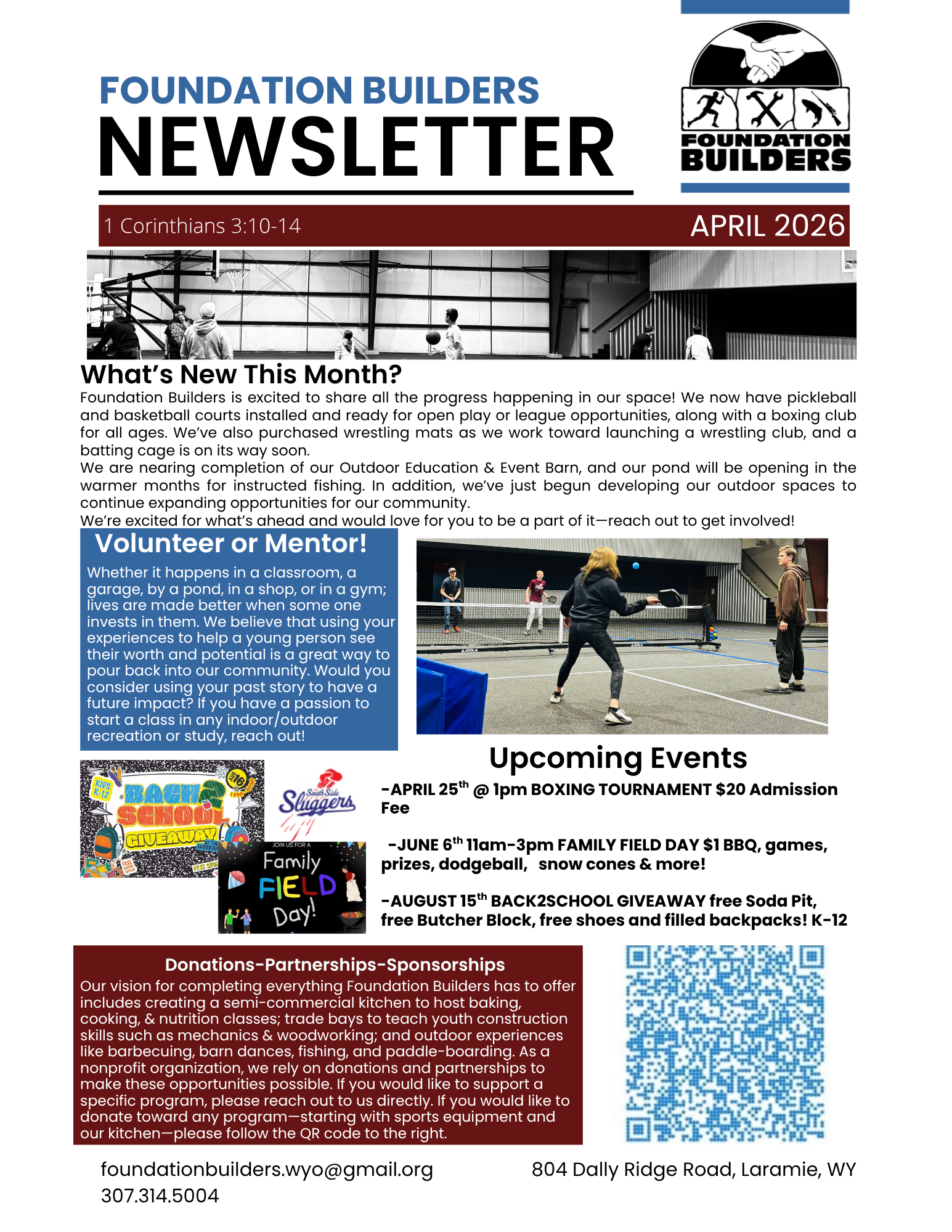 Wrestling mats, basketball, batting cage coming soon. Upcoming events.